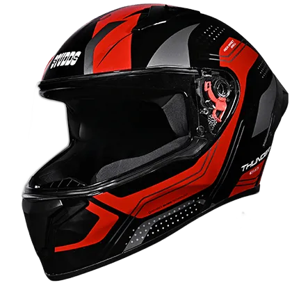 Thunder is one of the most stylish and aggressive helmets from STUDDS. Its aerodynamic design complimented with spoiler and attractive solid colour gives it a perfect look. Thunder is a full face helmet with aerodynamic design , dynamic ventilation system, quick release visor and chin strap.