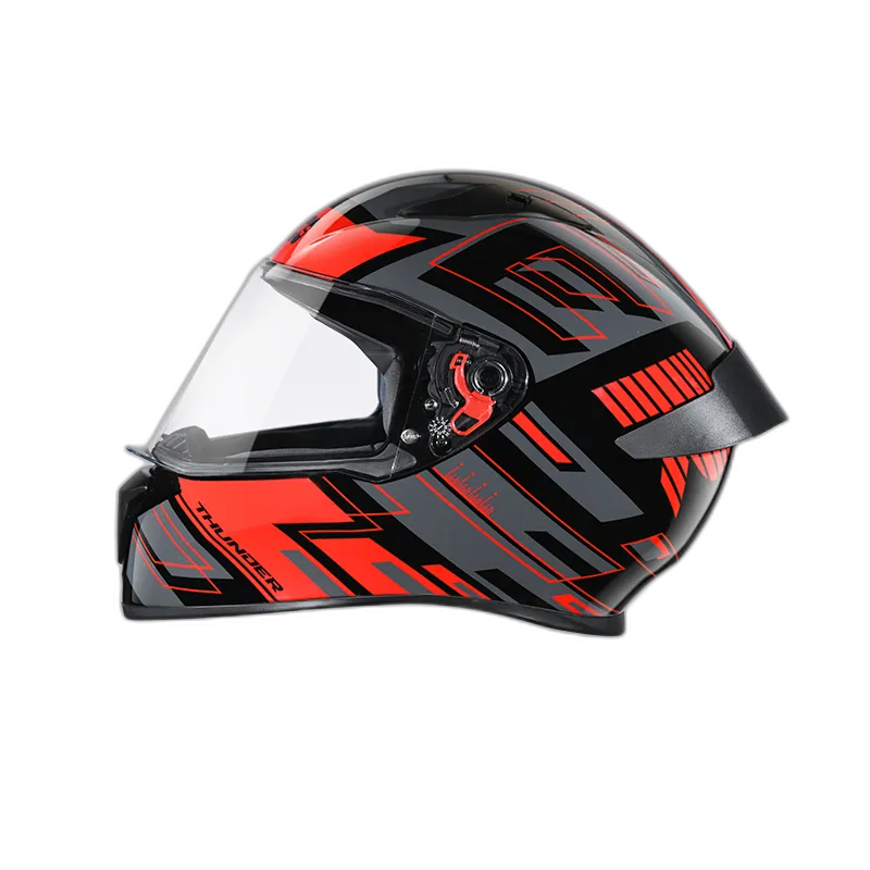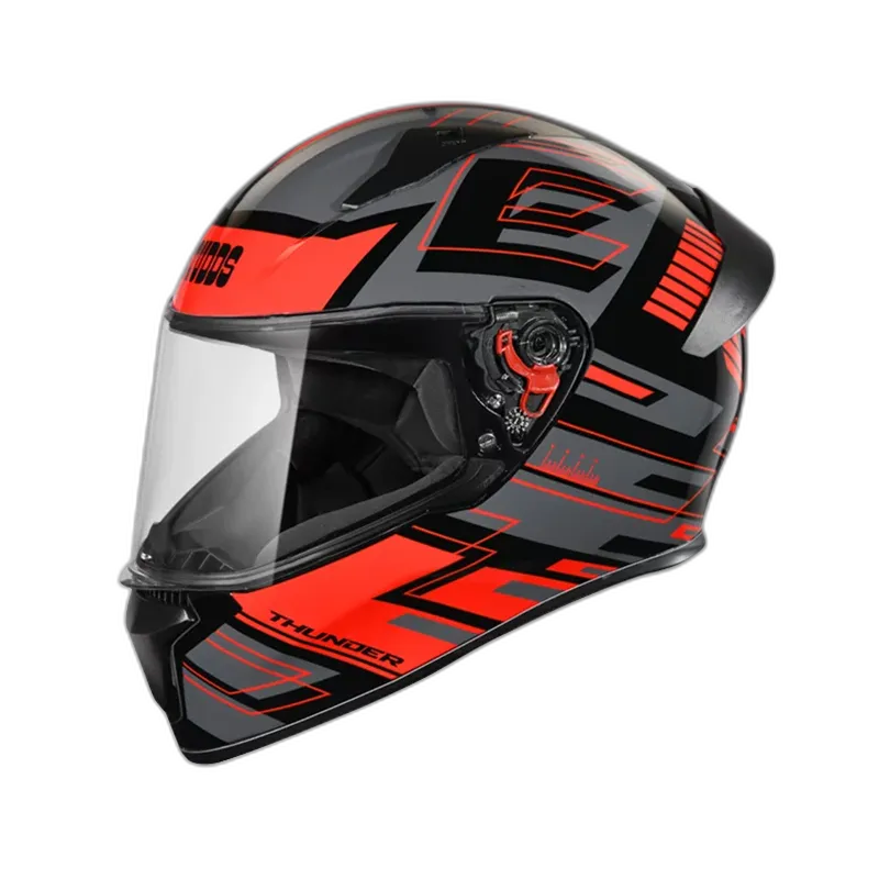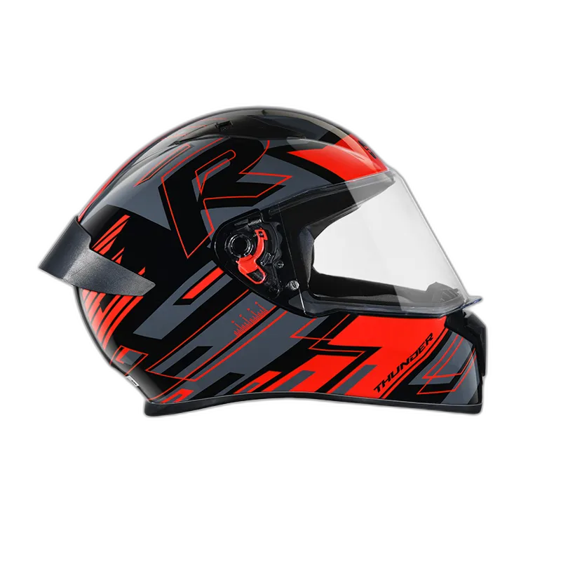 Thunder is one of the most stylish and aggressive helmets from STUDDS. Its aerodynamic design complimented with spoiler and attractive solid colour gives it a perfect look. Thunder is a full face helmet with aerodynamic design , dynamic ventilation system, quick release visor and chin strap.