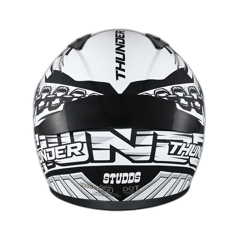 Thunder is one of the most stylish and aggressive helmets from STUDDS. Its aerodynamic design complimented with spoiler and attractive solid colour gives it a perfect look. Thunder is a full face helmet with aerodynamic design , dynamic ventilation system, quick release visor and chin strap.