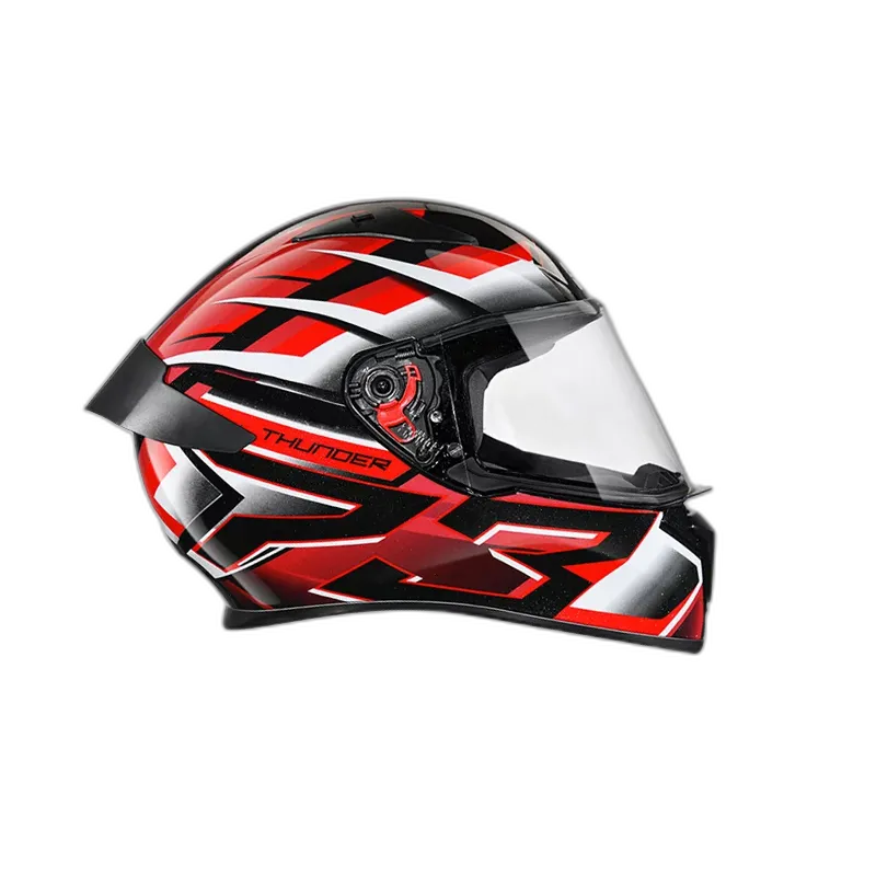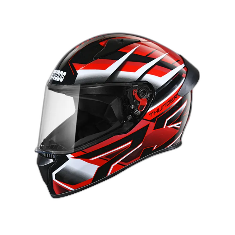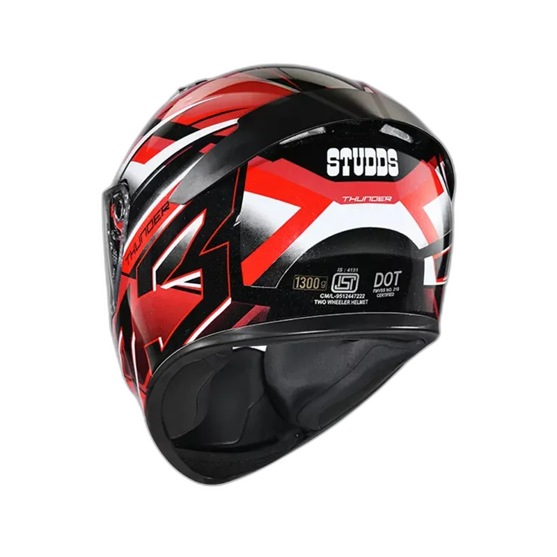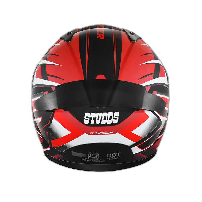 Thunder is one of the most stylish and aggressive helmets from STUDDS. Its aerodynamic design complimented with spoiler and attractive solid colour gives it a perfect look. Thunder is a full face helmet with aerodynamic design , dynamic ventilation system, quick release visor and chin strap.