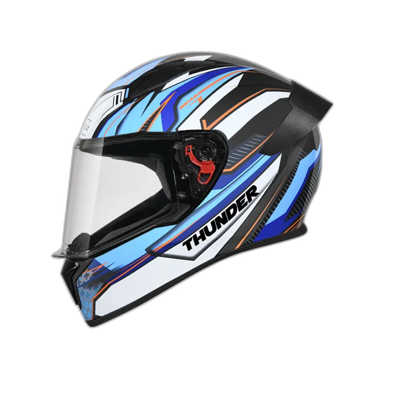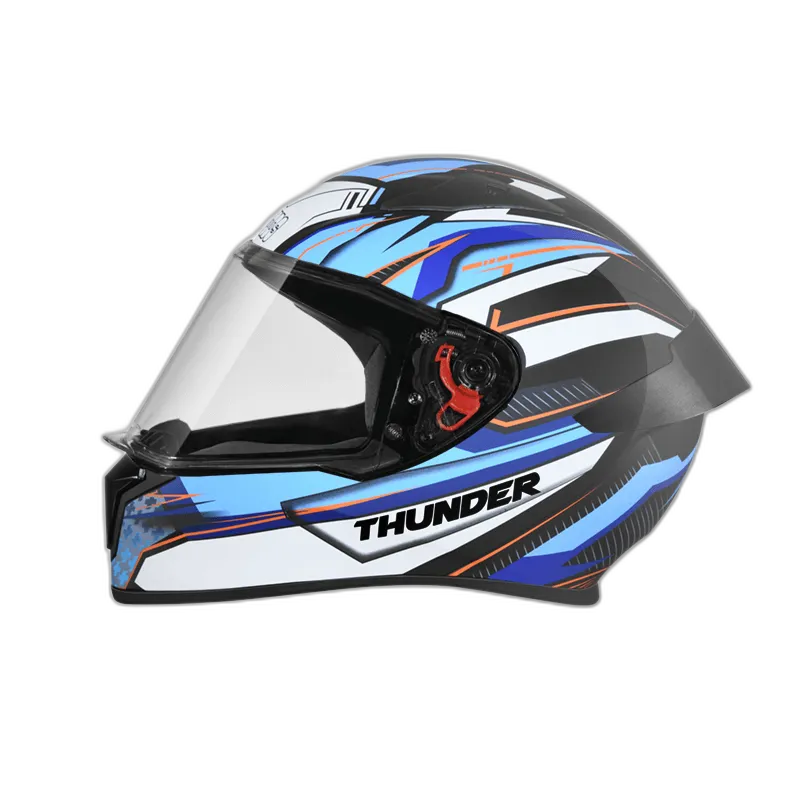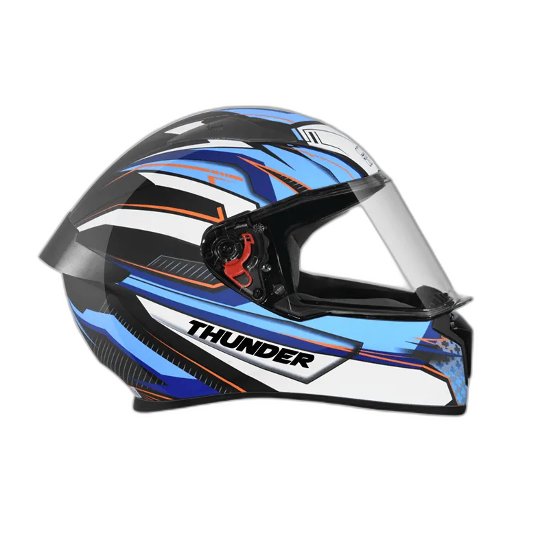 Thunder is one of the most stylish and aggressive helmets from STUDDS. Its aerodynamic design complimented with spoiler and attractive solid colour gives it a perfect look. Thunder is a full face helmet with aerodynamic design , dynamic ventilation system, quick release visor and chin strap.