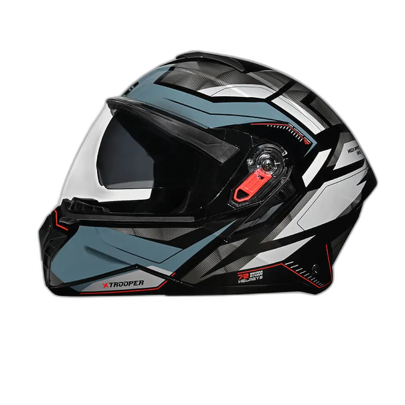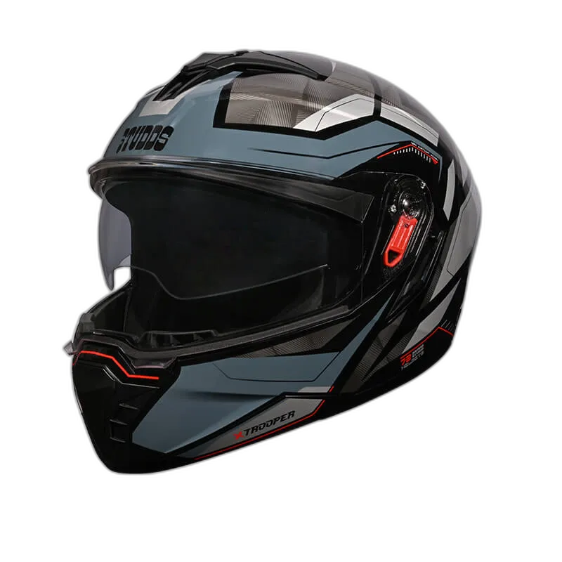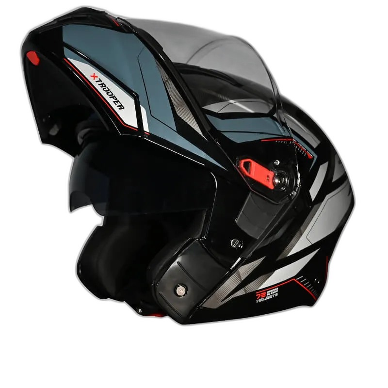 Trooper DV is a flip-up full-face helmet with product features like high impact outer shell and regulated density EPS, hypoallergenic liner, quick release visor and quick release chin strap. Trooper DV comes in various sizes and colour options.