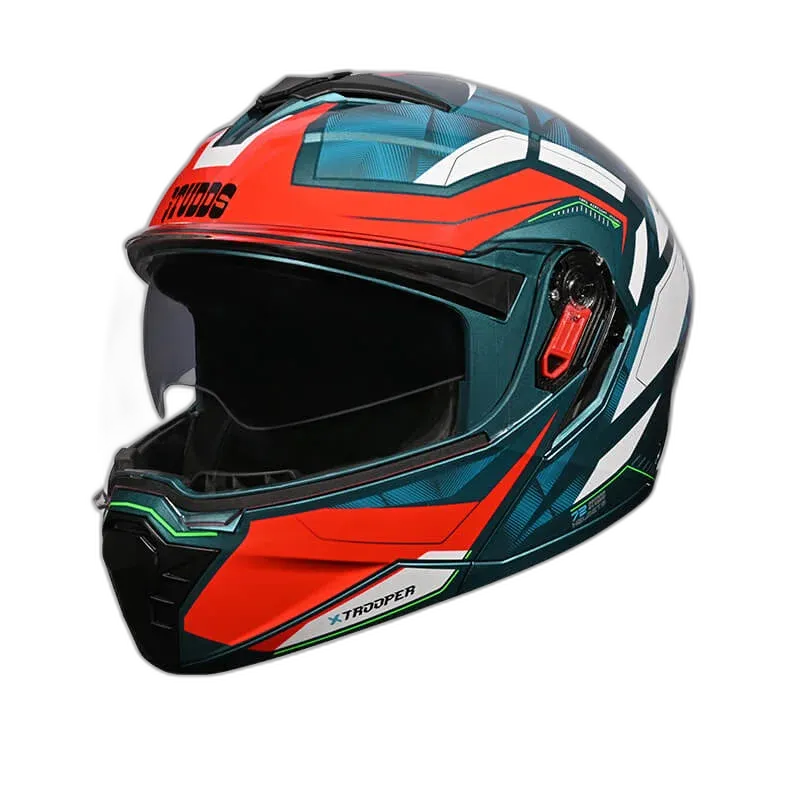 Trooper DV is a flip-up full-face helmet with product features like high impact outer shell and regulated density EPS, hypoallergenic liner, quick release visor and quick release chin strap. Trooper DV comes in various sizes and colour options.