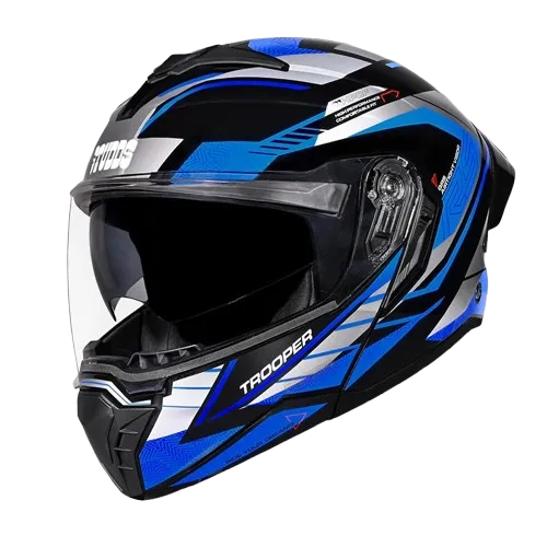THE STUDDS TROOPER D4 RACE IS A STYLISH AND VERSATILE FLIP-UP HELMET DESIGNED FOR TOP TIER SAFETY AND LUXURIOUS COMFORT. ITS HIGH-IMPACT OUTER SHELL ENSURES RELIABLE PROTECTION, WHILE THE FLIP-UP MECHANISM ALLOWS AN EASY TRANSITION BETWEEN FULL-FACE AND OPEN-FACE MODES — MAKING IT IDEAL FOR BOTH CITY RIDES AND LONG-DISTANCE TRAVEL.