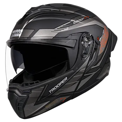 The Studds Trooper Race D4 Matt Black Orange N4 Flip Up Helmet combines sporty aesthetics with uncompromised safety and comfort. Designed for passionate riders, this helmet offers a high-impact-resistant ABS outer shell, dual certification (ISI & DOT), and a convenient flip-up design — making it perfect for both city commuting and long highway rides.