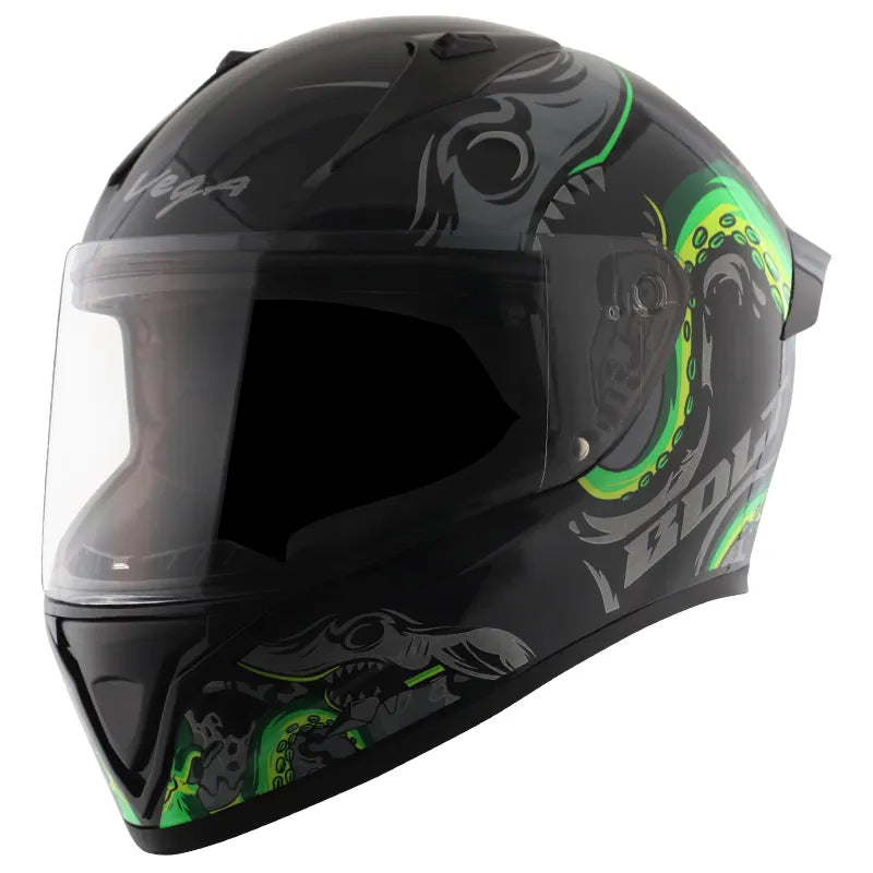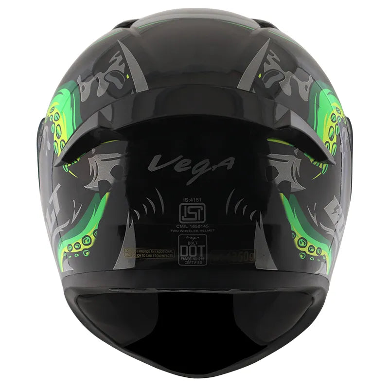 VEGA Bolt Octopus Black Neon Green Full Face Helmet