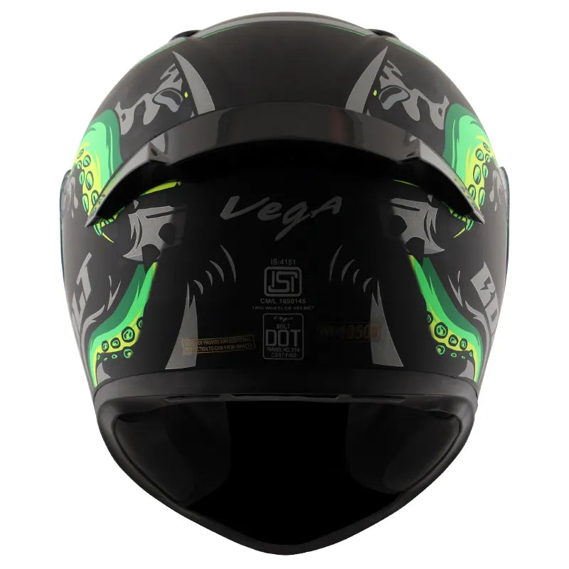 VEGA Bolt Octopus Dull Black Neon Green Full Face Helmet