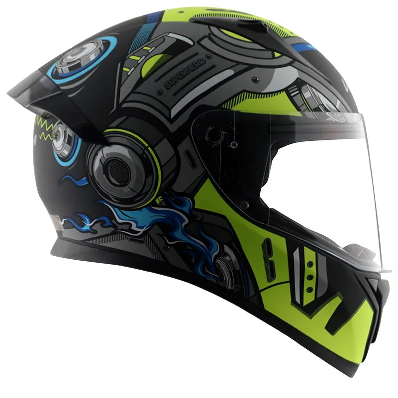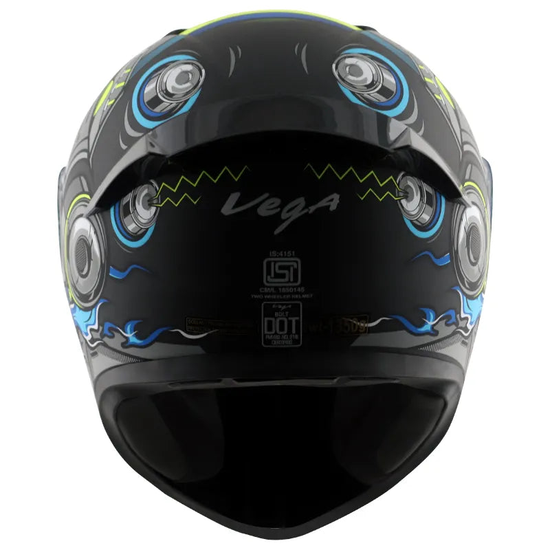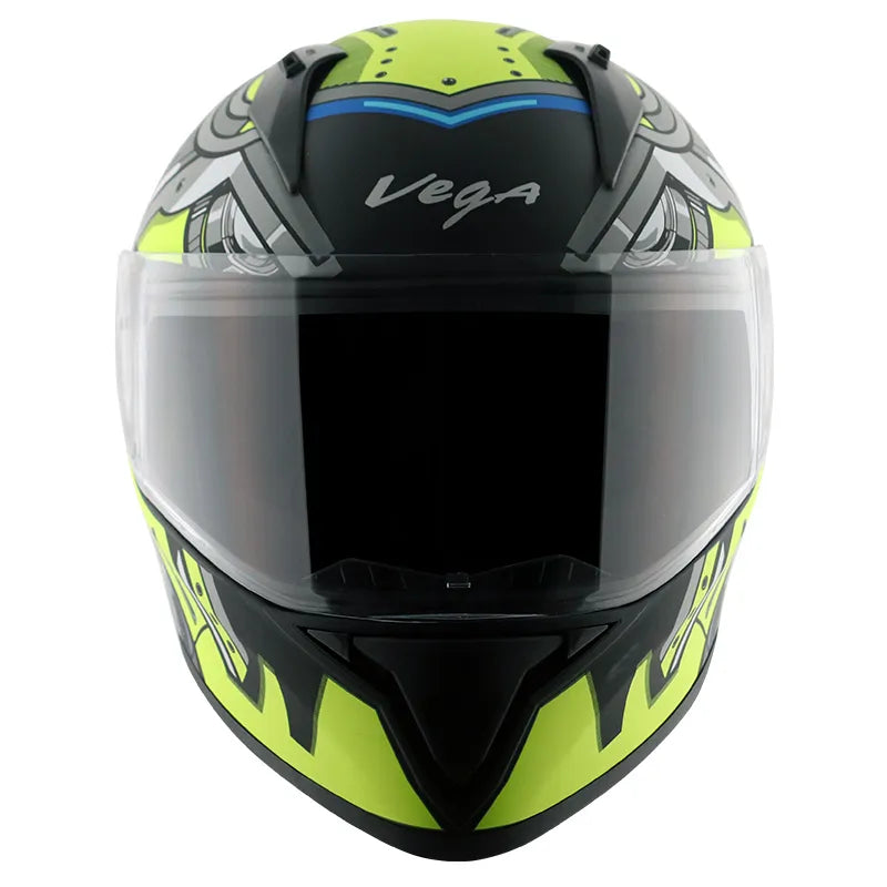 VEGA Bolt Superhero Dull Black Neon Yellow Full Face Helmet