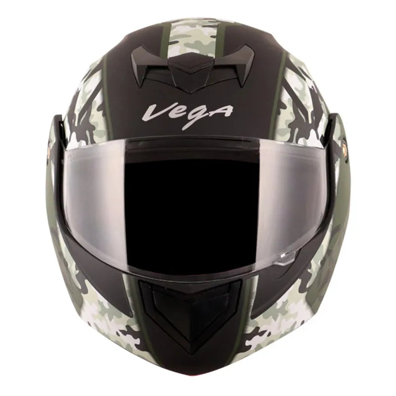 VEGA Crux Dx Camouflage Dull Black Battle Green Flip Up Helmet