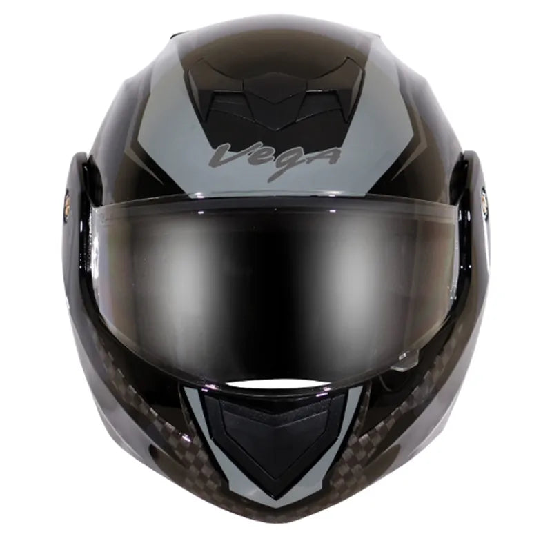 VEGA Crux Dx Dual Visor Checks Black Silver Flip Up Helmet