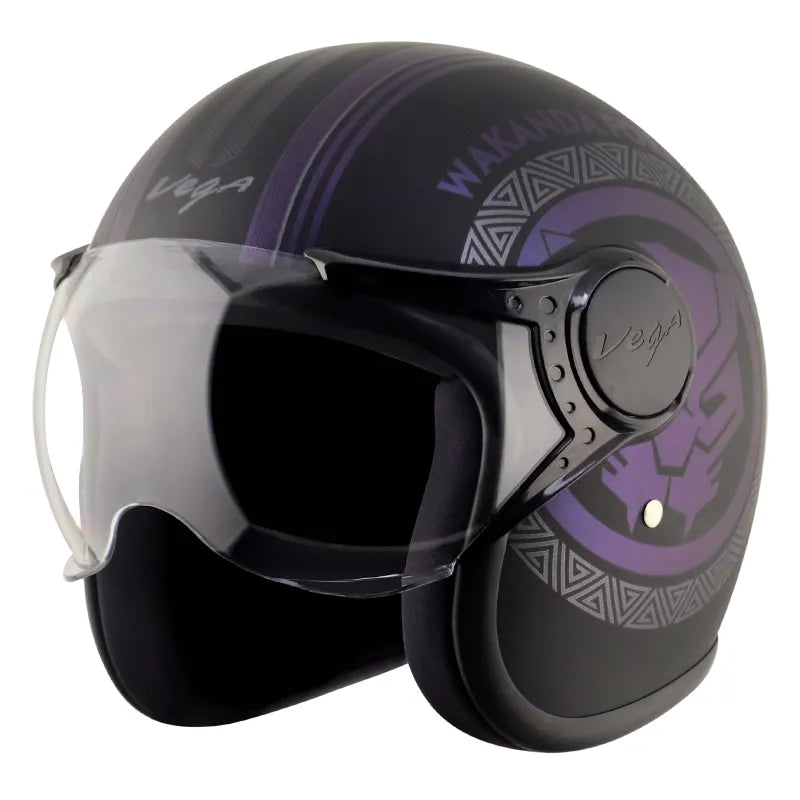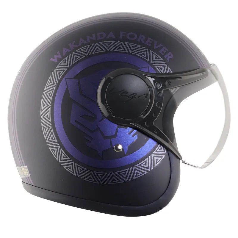VEGA Jet Dx Marvel Black Panther Dull Purple Half Face Helmet