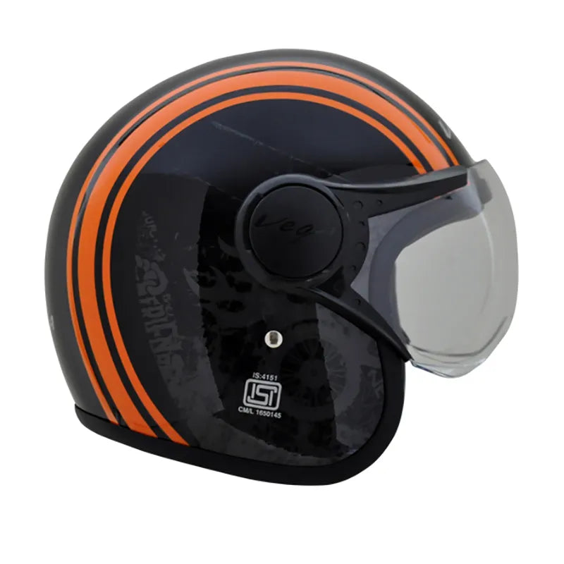 VEGA Jet Old School Black Orange Half Face Helmet