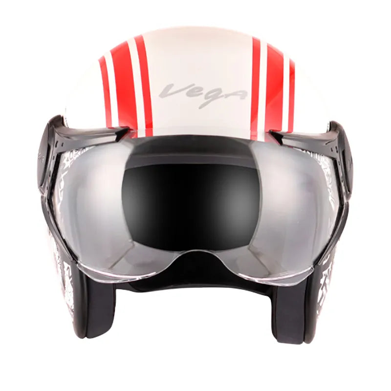 VEGA Jet Old School White Red Half Face Helmet