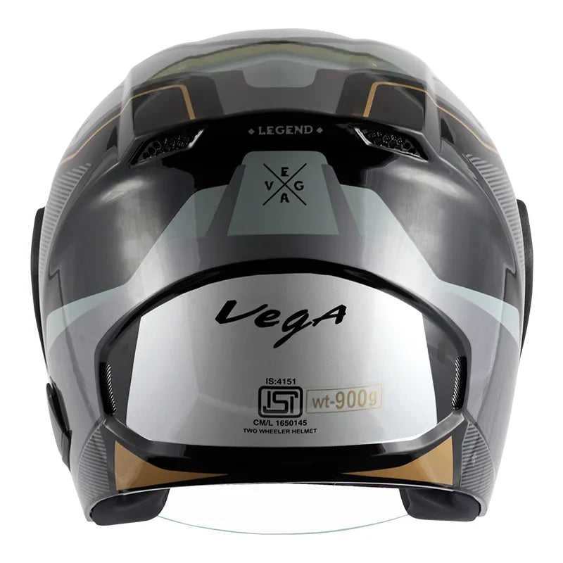 VEGA Lark Legend Black Silver Half Face Helmet
