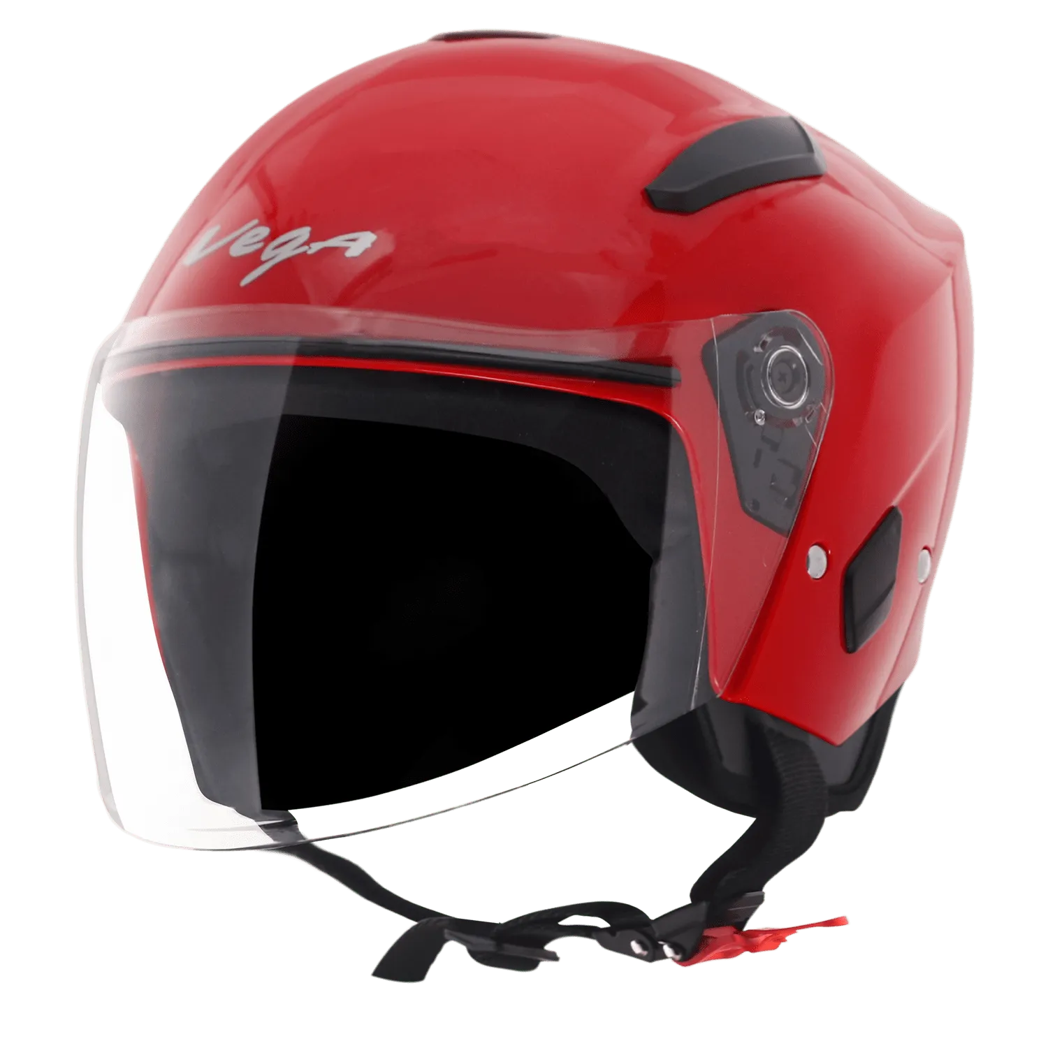 Whether you're zipping through busy city streets or enjoying an evening ride, the Vega Orion Dx Red Half Face Helmet keeps you safe while adding a pop of color to your gear. Built for urban commuters who value comfort, convenience, and style.