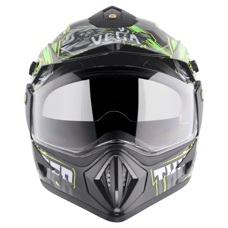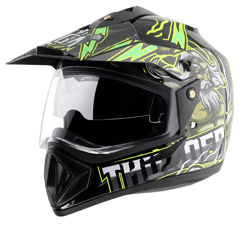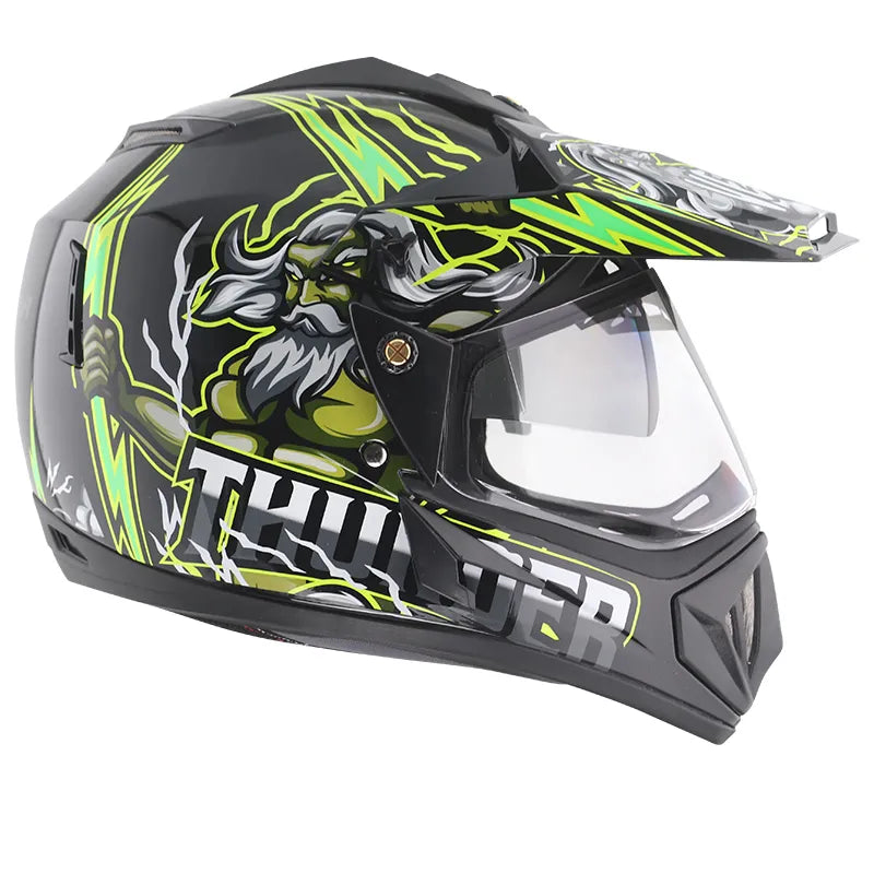 Vega and Marvel officially collaborated and came up with the most loved Marvel Comic character icons for the riders.Off-road marvel Thor from Vega Helmets is the first love of every rider with flamboyant style and the color is all set to rule the road. Disney Off Road Marvel helmet features an aerodynamically built shell that offers proper airflow to provide the utmost comfort and safety during the ride and comes with a new stylish peak. Removable and washable lining, it is also odor resistant helping the helmet stay fresher, and longer in between cleanings, removable and replaceable with optional pads of various thicknesses for a more custom fit, a removable nose guard, removable wind protector, collarbone safe profile. This helmet is ISI Certified which comes with a quick-release metallic buckle, an optical polycarbonate visor with scratch and UV resistance, and an easy mechanism.