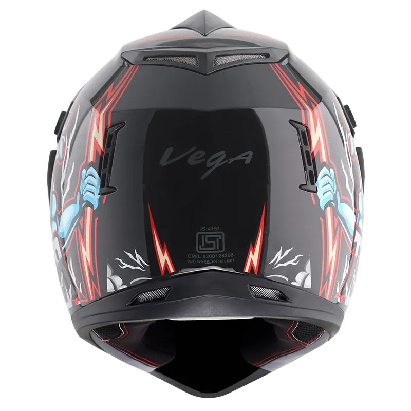 Vega and Marvel officially collaborated and came up with the most loved Marvel Comic character icons for the riders.Off-road marvel Thor from Vega Helmets is the first love of every rider with flamboyant style and the color is all set to rule the road. Disney Off Road Marvel helmet features an aerodynamically built shell that offers proper airflow to provide the utmost comfort and safety during the ride and comes with a new stylish peak. Removable and washable lining, it is also odor resistant helping the helmet stay fresher, and longer in between cleanings, removable and replaceable with optional pads of various thicknesses for a more custom fit, a removable nose guard, removable wind protector, collarbone safe profile. This helmet is ISI Certified which comes with a quick-release metallic buckle, an optical polycarbonate visor with scratch and UV resistance, and an easy mechanism.