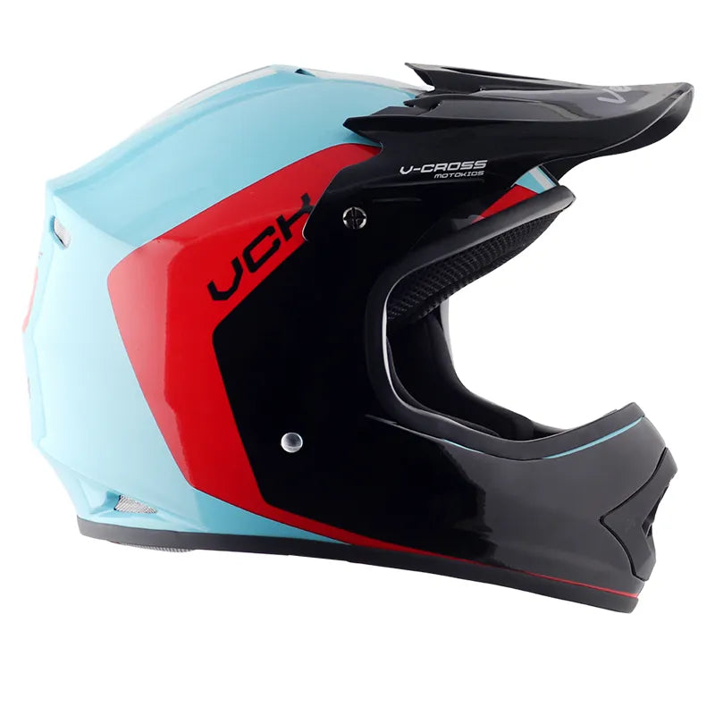 VEGA presents you with an Off road V-Cross helmet specifically designed for the fearless and the adventurous.To ride where the road ends and the journey towards the passion begins, and to conquer the trails with confidence. Buy the coolest helmet for off-roading and dirt biking at the most affordable price with the best quality. Note: This helmet is without visor and comes with stylish peak.